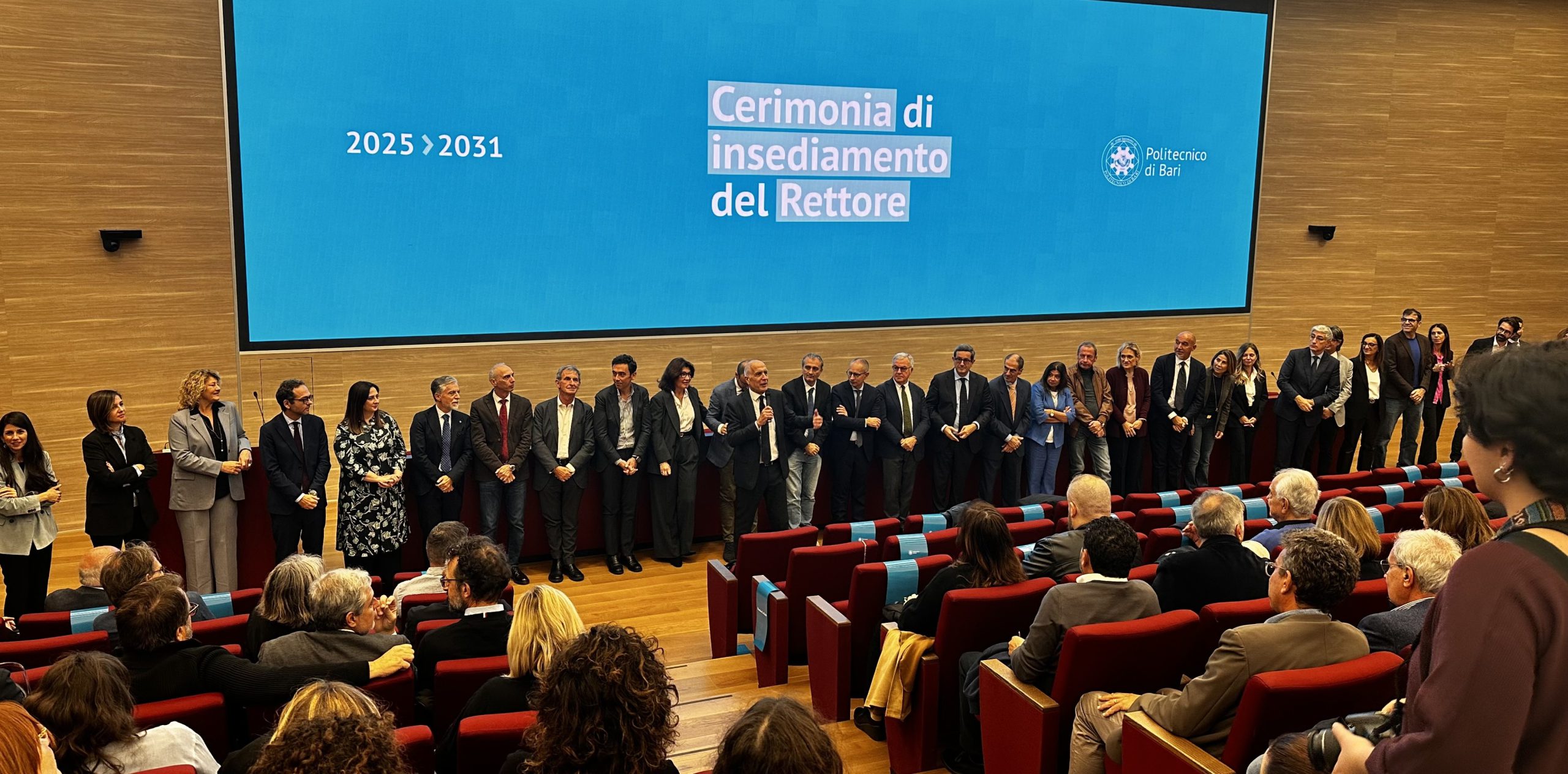 I PRORETTORI: Michele Ruta – Prorettore Vicario; Vito Iacobellis – Prorettore alla Didattica; Mario Carpentieri – alla Ricerca; Antonio Messeni Petruzzelli – alla Valorizzazione delle conoscenze e innovazione; Annalisa Di Roma – alla Centralità della comunità studentesca, alla sostenibilità e all’inclusione; Pietro De Palma – alle Politiche strategiche; Fabio Fatiguso – alla Qualità e alla cura e gestione del patrimonio; Eugenio Di Sciascio – Prorettore con delega ai Rapporti con le Università della Cina. Per l’occasione, il rettore ha presentato anche la Dg vicaria, la dirigente Francesca Santoro e la sua segreteria particolare, composta da Annalisa Volpicella, Federica Prigigallo e Federica Cirulli.