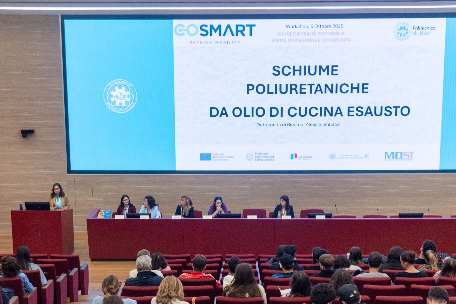 Un workshop, “Donne e mobilità sostenibile” organizzato dal progetto CO-SMART (COmmunicating Sustainability: innovations in MAterial Recycling and new production Technologies for the automotive sector), nell’ambito delle attività svolte del Centro Nazionale per la Mobilità Sostenibile (CN MOST), finanziato dal MUR con fondi PNRR M4C2 I1.4, si è tenuto lo scorso 6 ottobre, nell’aula magna “Attilio Alto” del Poliba. L’iniziativa ha inteso valorizzare le competenze femminili e promuovere la parità di genere nel campo della mobilità attraverso la divulgazione delle attività in corso per la realizzazione di una mobilità sempre più sostenibile ad opera di figure femminili attive nel mondo delle professioni, della pubblica amministrazione, dell’impresa e dell’Università.