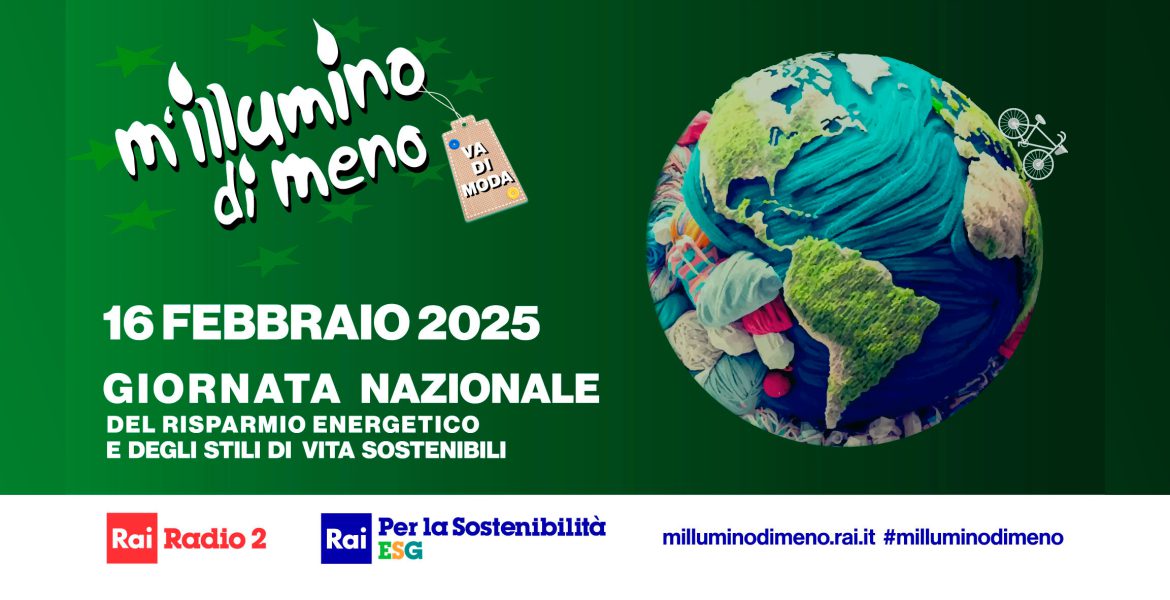 M’illumino di Meno. Ideata nel 2005 dal programma Caterpillar di Rai Radio2, nacque il 16 febbraio 2005, giorno dell’entrata in vigore del Protocollo di Kyoto. Nel corso di vent’anni l’iniziativa, si è sviluppata attorno a tre temi quali: educazione ambientale per promuoverne la consapevolezza; comunità, per dare spazio alle esperienze di chi ha adottato buone pratiche ambientali; partecipazione, per incentivare l’attivismo in prima persona e realizzare iniziative dedicate al risparmio energetico e alla sostenibilità.