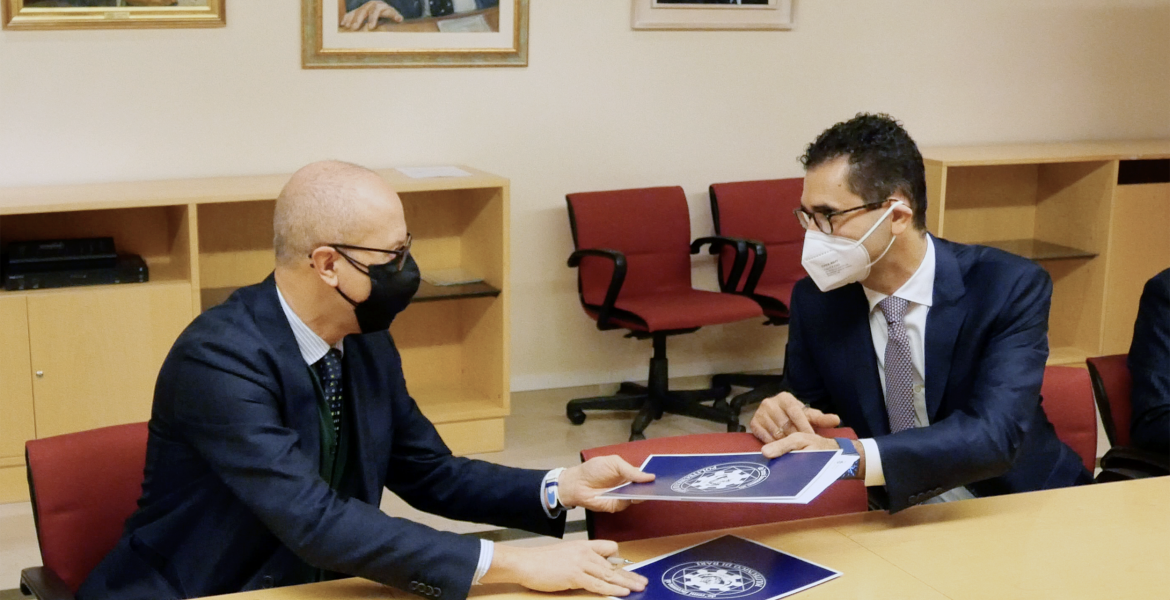 Vito Bruno, Direttore Generale dell’Arpa Puglia e Francesco Cupertino, Rettore del Politecnico di Bari, firmano l’accordo quadro.