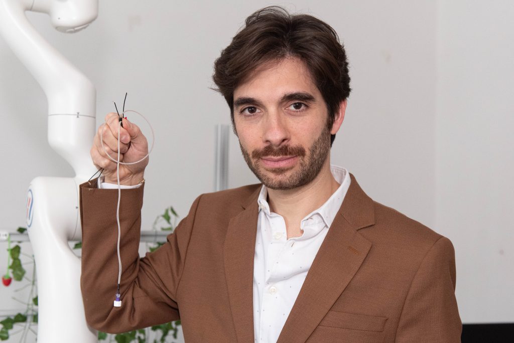 Il professor Vito Cacucciolo con gli Electrofluidic fiber muscles