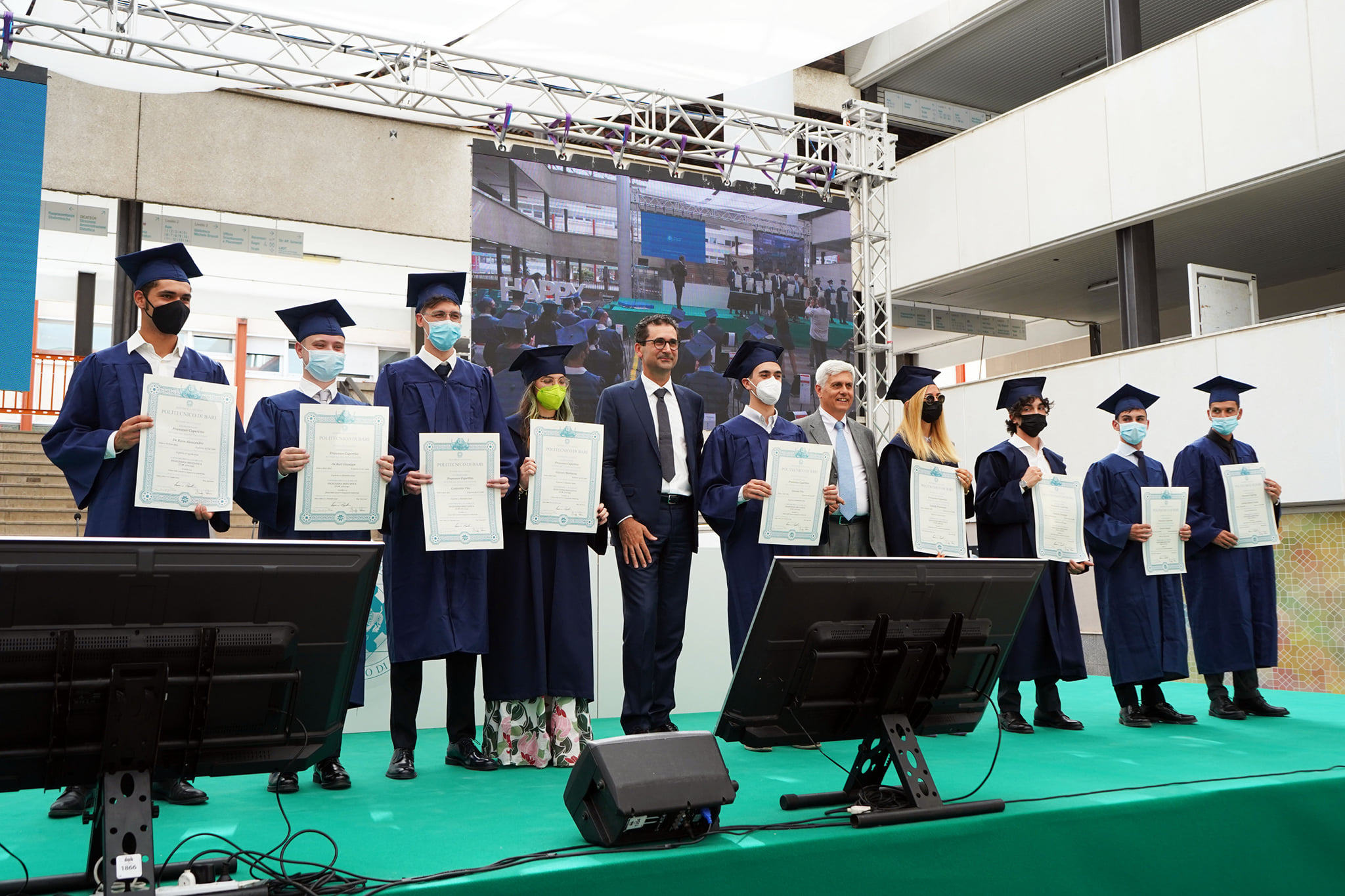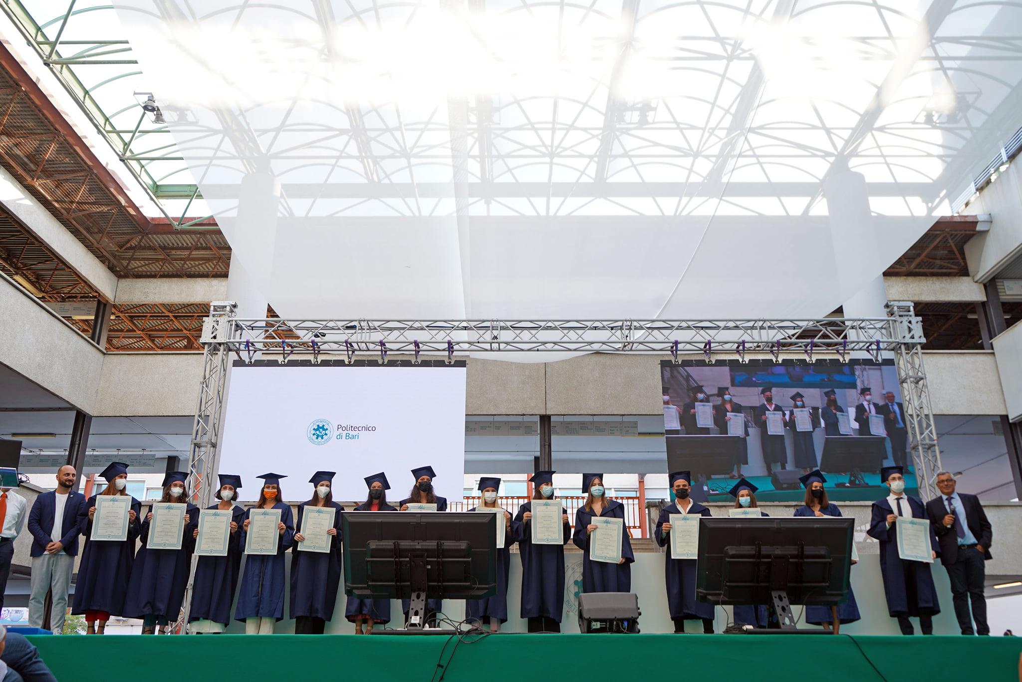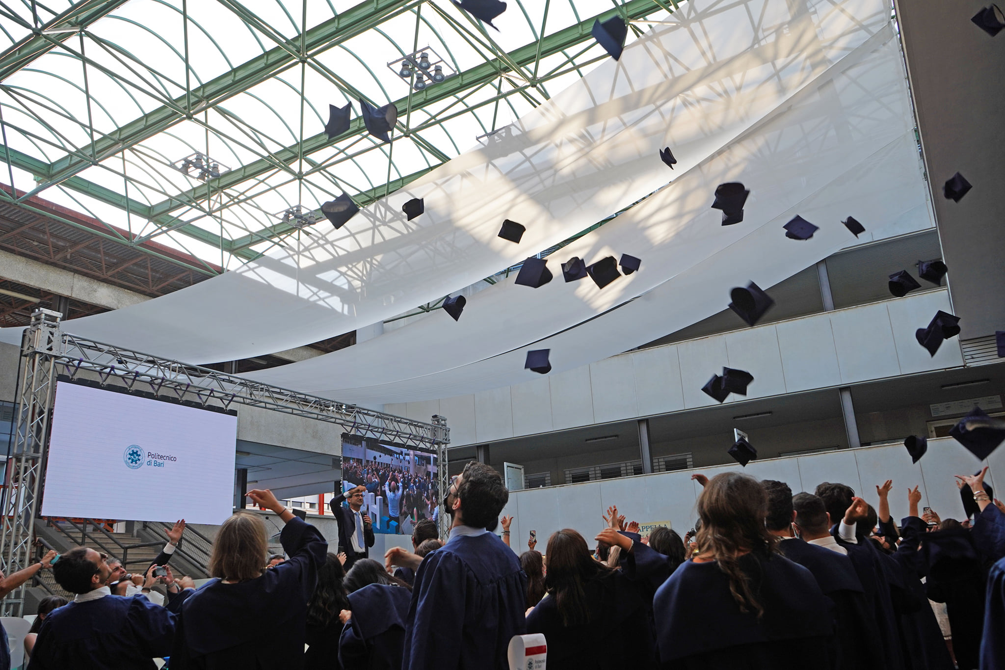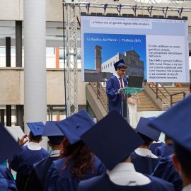 Esempio di tradizione anglosassone molto gradita anche a queste latitudini, i Graduation Days Poliba si sono svolti in un clima di autentica festa. Ha condotto la manifestazione, con il solito brio, l’attore Antonio Stornaiolo, affiancato dalla giornalista e conduttrice Annamaria Ferretti mentre il rettore, Francesco Cupertino e i suoi delegati hanno consegnato, complessivamente, circa 1.000 pergamene ad altrettanti neolaureati a distanza. Per l’ateneo si è trattata della seconda edizione di una manifestazione realizzata per la prima volta l’anno scorso, in piazza Ferrarese a Bari e che ha centrato, anche in questo caso, l’obiettivo di ricompattare la comunità in un momento storico così particolare.