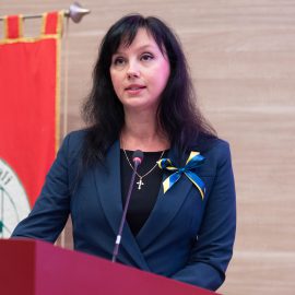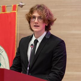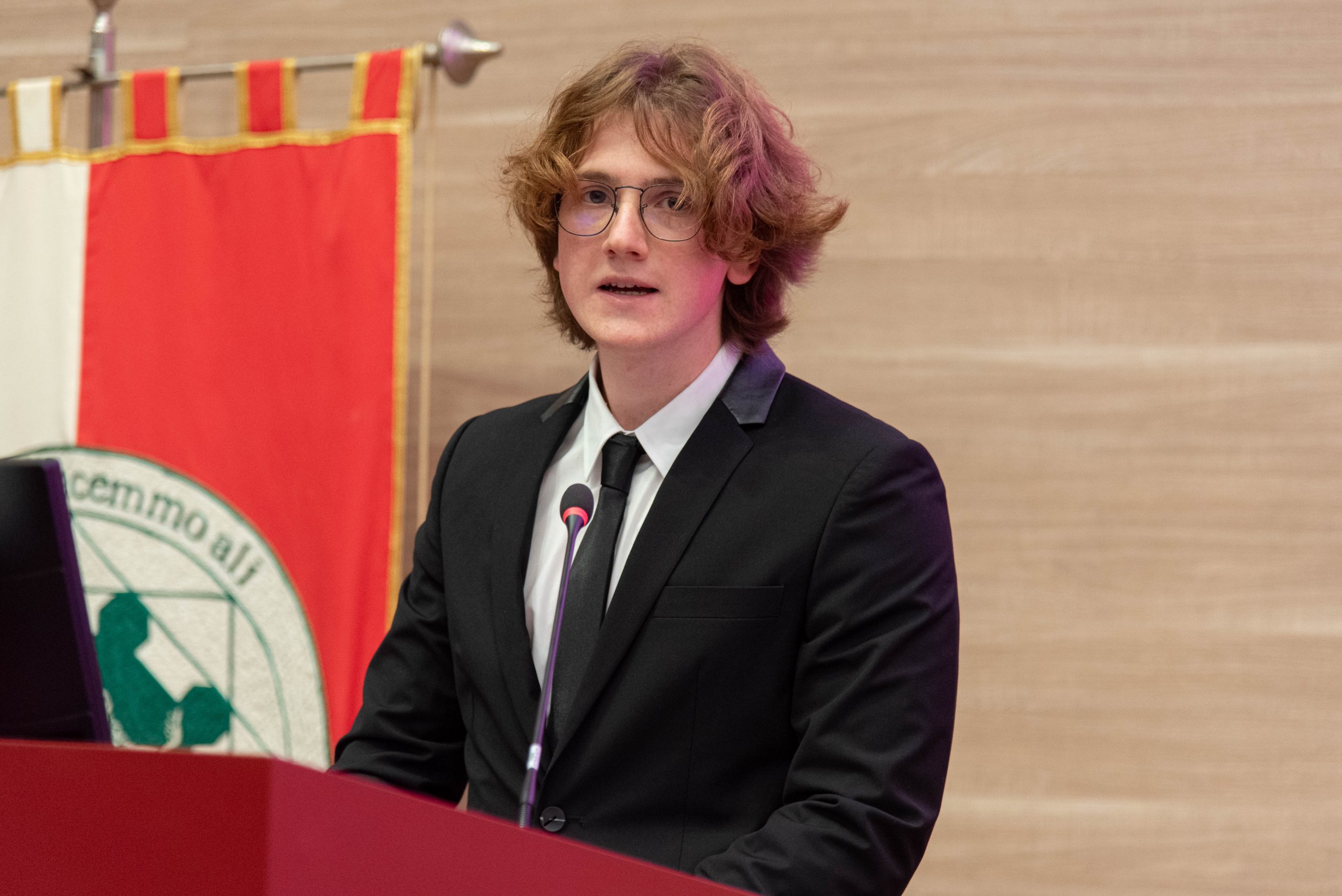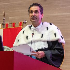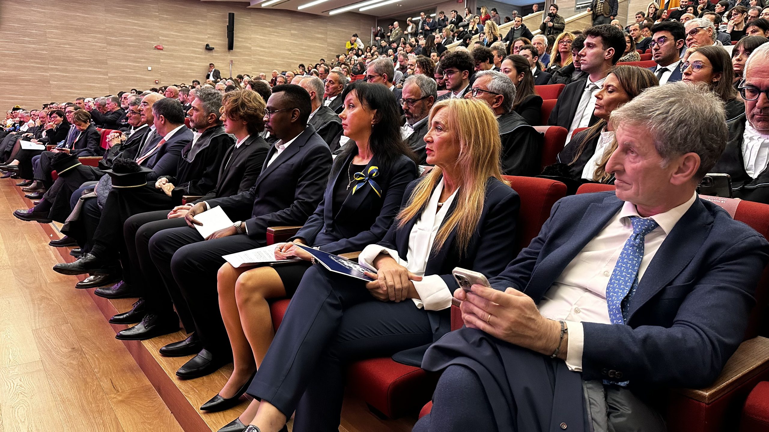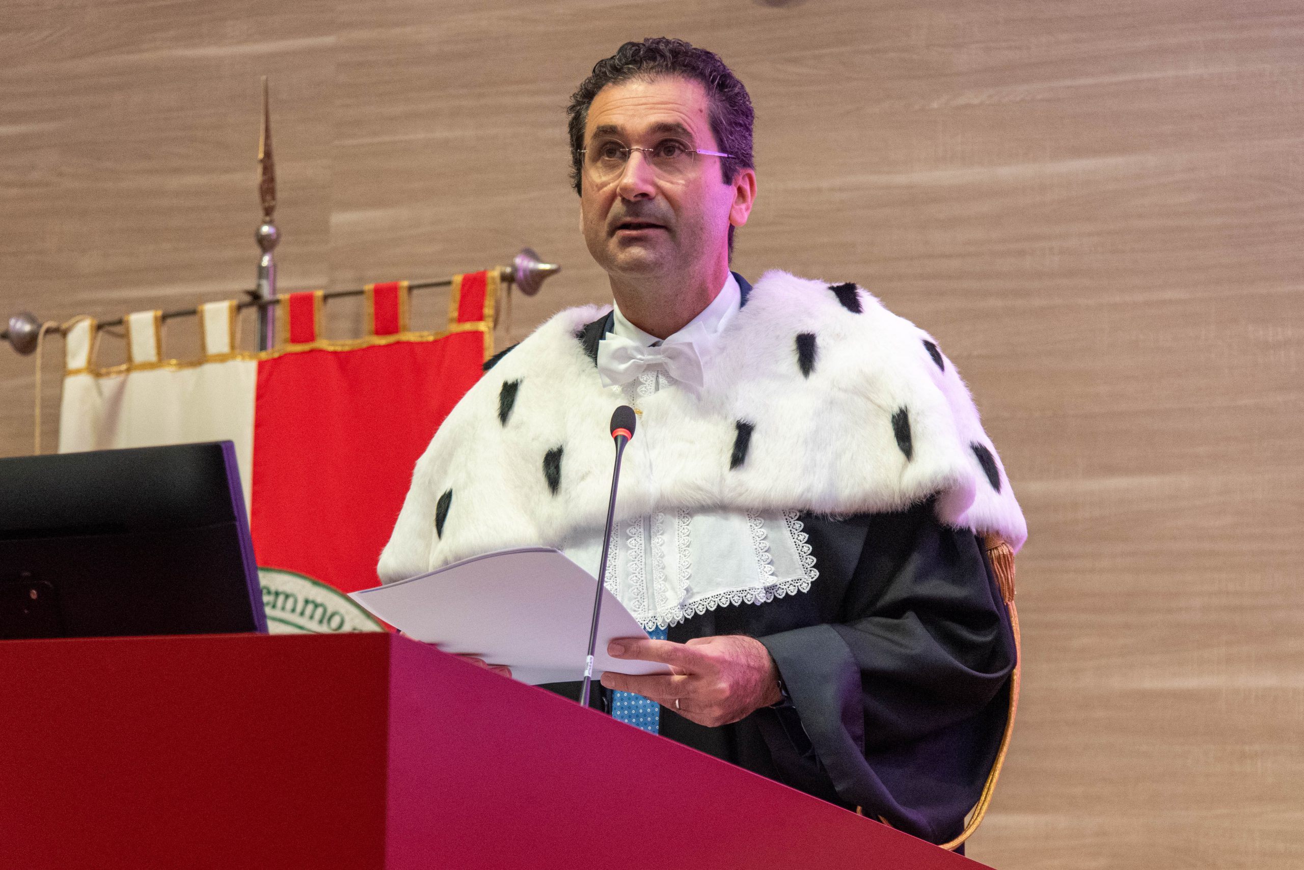 Sull’aspetto umano del cambiamento e sul nuovo ruolo che in un mondo così complesso dovrebbe assumere l’Università, nei confronti dei giovani, è intervenuto il presidente del Consiglio degli Studenti, Cuccovillo: «Prendete questa occasione di rinnovamento – ha detto rivolgendosi agli studenti – per ricordare che ogni percorso universitario è unico e, spesso, accompagnato da sfide e pressioni che non sempre vengono comprese, da chi osserva dall’esterno. Per molti di noi – ha aggiunto Cuccovillo – il peso delle aspettative e il timore del giudizio altrui possono rendere il cammino più difficile e faticoso» ha detto il presidente del CdS auspicando poi che l’università si faccia «promotrice della crescita di tutta la comunità studentesca, non solo migliorando sempre l’offerta formativa, ma ponendosi come baluardo delle nuove e innovative politiche didattiche».