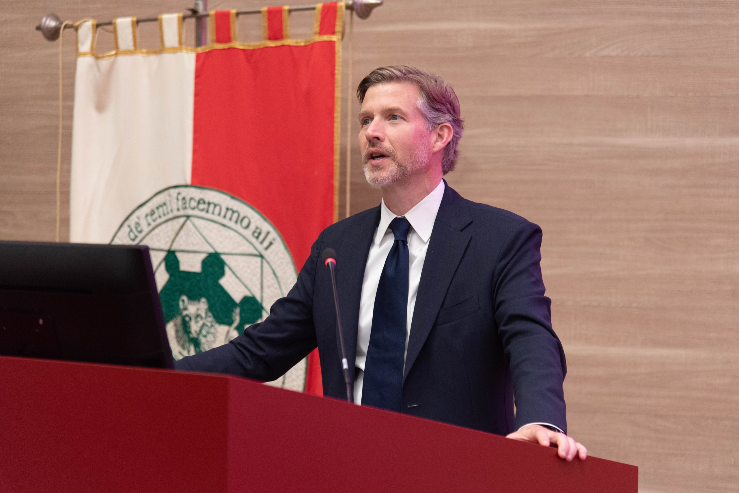 Temi e analisi che hanno riguardato anche la lectio di Ross. Un passaggio del suo intervento, dedicato all’intelligenza artificiale e al cambiamento che comporterà per le università, è stato particolarmente significativo: «É fondamentale che diventiamo i padroni dell’AI e non i suoi schiavi. È imperativo che i nostri studenti studino l’AI – ha spiegato lo studioso americano – perché in un mondo dominato dall’intelligenza artificiale esistono due tipi di lavoratori, ossia coloro che dicono alle macchine cosa fare e coloro che, invece, fanno ciò che le macchine dicono loro di fare. Dobbiamo fornire le istruzioni – ha concluso Ross – affinché siamo noi a dire alle macchine cosa fare.