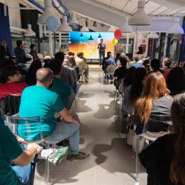 La serata è incominciata nella sede di Talent Garden con il saluto del rettore, Francesco Cupertino e, a seguire, le presentazioni delle associazioni studentesche alle quali sono stati assegnati degli spazi all’interno degli Oplà. Il primo intervento è stato quello di Simone Ginefra in rappresentanza di Frequenza Libera, la web radio del Politecnico che racconta la vita dell’ateneo dal punto di vista degli studenti, nata nel 2014 come un progetto sperimentale e giunta quasi al suo decimo anniversario di attività. Un laboratorio di comunicazione sempre aperto all’innovazione, ulteriormente arricchitosi con la recente partecipazione al FRU 2023, il Festival della radio universitarie italiane che si è svolto ai primi di maggio a Teramo.