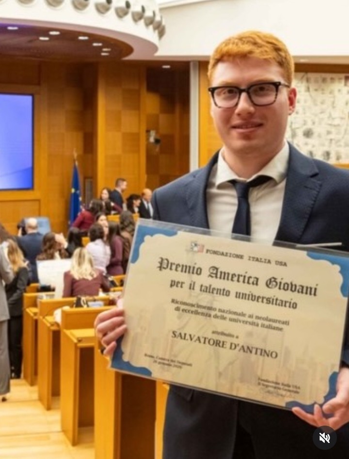 Salvatore D’Antino, 25 anni, di Lucera (FG), neolaureato magistrale al Politecnico di Bari in Ingegneria Gestionale figura tra i mille talenti d’Italia che hanno ricevuto il “Premio America Giovani” dalla Fondazione Italia-USA.