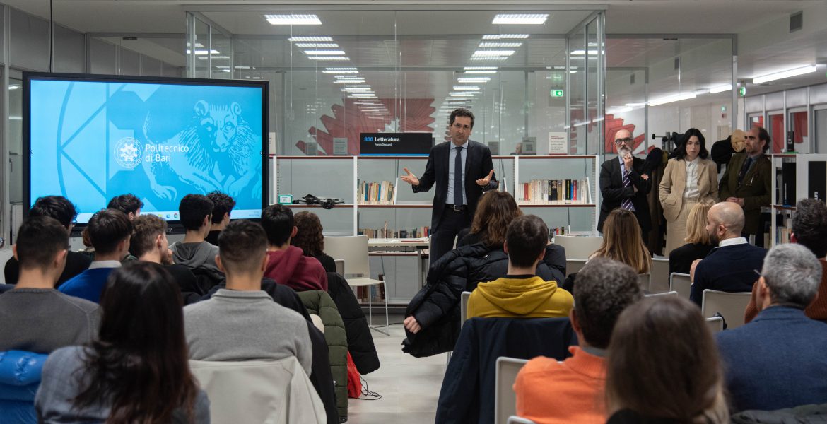 Nel presentare il suo libro, l’autore è stato affiancato da due giornalisti, Natascha Lusenti e Angelo Pannofino, nel ruolo di moderatori con una breve introduzione del rettore del Politecnico, Francesco Cupertino. «Vogliamo aprirci sempre più ad una sana contaminazione con ambiti di studio e di ricerca solo apparentemente lontani dai nostri», ha detto il rettore rivolgendosi in particolare ad una rappresentanza di studenti del liceo scientifico Fermi, di Bari, presenti per l’occasione insieme con le loro docenti.